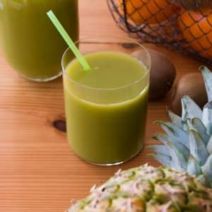aus frisch gepressten Orangen