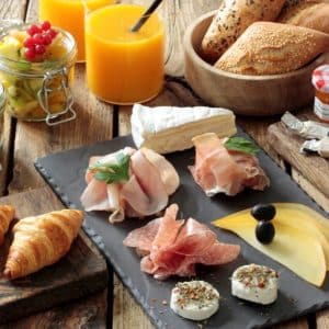 Kochschinken, Palmaschinken, Salami, Camembert, Ziegenkäse, holländischer Hartkäse